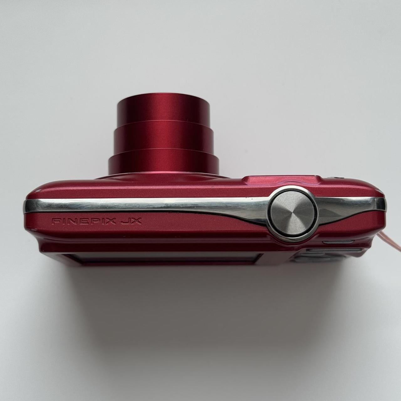 The Fujifilm FinePix JX660 is a slim, pocket-sized digital camera in a cherry red finish. It’s lightweight and easy to carry, while still offering a range of fun features and shooting modes. The camera captures clean, sharp photos with a classic modern-digital look, perfect for everyday moments.